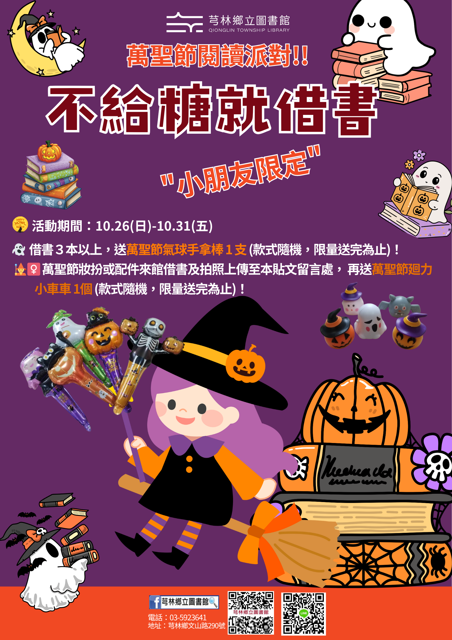 【芎林館活動】萬聖節搞什麼鬼~不給糖就借書,114年10月26日(星期日)-10月31日,歡迎小朋友及親子家庭一起來參加。