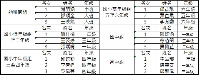 年度樂讀總冠軍個人競賽得獎名單請連結